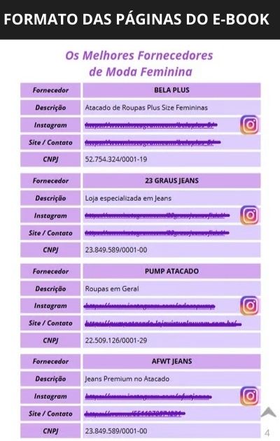 Reunimos 332 fornecedores escolhidos a dedo, com produtos de alta margem de lucro, que são tão procurados que não precisam anunciar na internet. São fornecedores com CNPJ, sites e/ou Instagram, para você conferir a procedência e negociar diretamente com eles